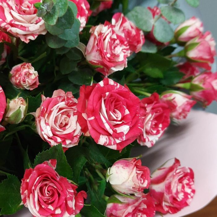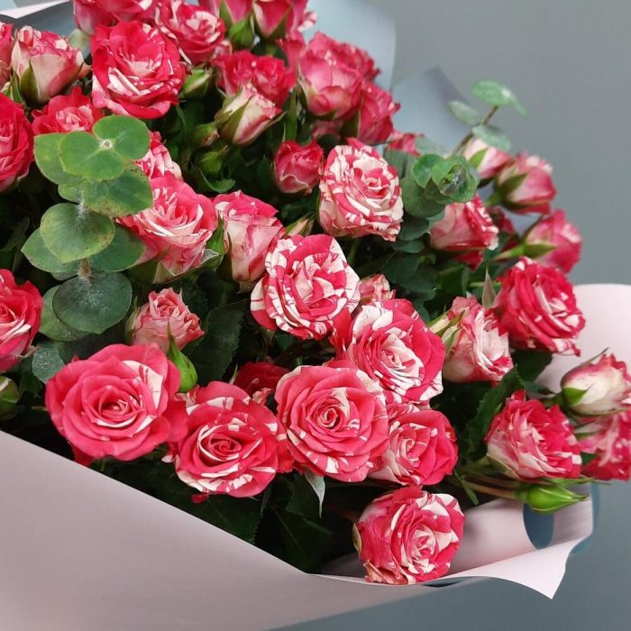 Все женщины любят цветы, но большинство из них предпочитает розы. Еще бы, ведь они завораживают своей красотой и покоряют своим ароматом.Прекрасный букет из кустовых роз, станет идеальным подарком для самых любимых и близких!Памятка для букета:1. Чистая вода раз в сутки.2. Стебли подрезаем на 0,5см при каждой смене воды.3. Ставим в прохладное место, но не у окна.4. Чтобы вода оставалась свежей, не допускайте попадания листьев и лепестков в воду.Друзья, обратите внимание, что цвет упаковки может быть другим, в зависимости от наличия на складе.