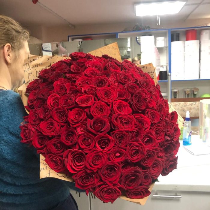 розы эквадор (50 см) “silatoi” – 101 шт.Лента атласная – 1 шт.Упаковка дизайнерская – 2 шт.