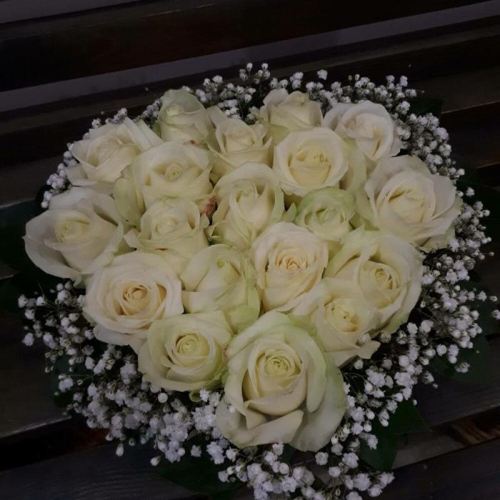 Гипсофила – 2 шт. белая роза – 19 шт. форма сердца – 1 шт.