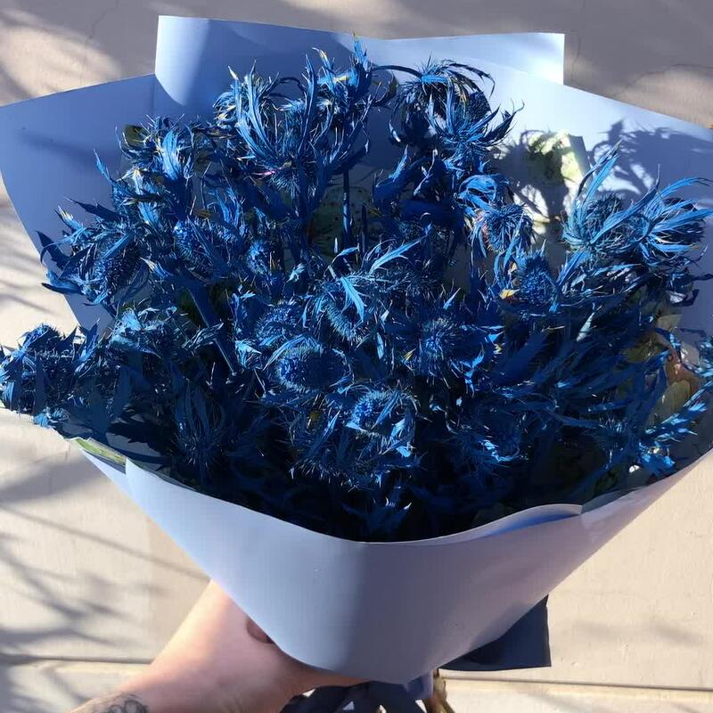 Упаковка – 2 шт.Лента атласная – 1 шт.эрингиум сухоцвет крашеный – 9 шт.
