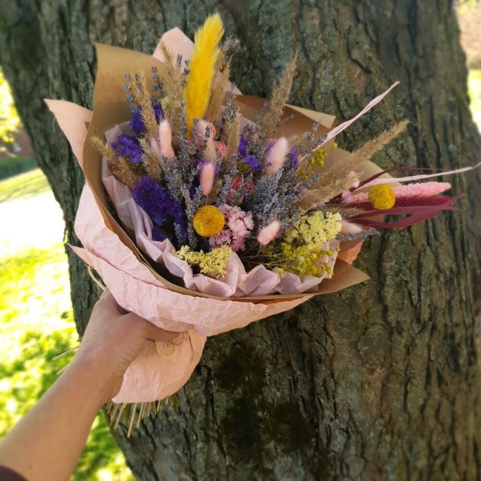 Колоски – 11 шт.Крафт упаковка – 2 шт.Лаванда (сухоцвет) пучок – 1 шт.Шпагат джутовый – 1 шт.гипсофила сухоцвет ветка – 1 шт.лагурус (сухоцвет) розовый – 7 шт.статица синяя сухоцвет – 3 шт.статица желтая сухоцвет – 2 шт.розы сухоцвет микс – 3 шт.краспедия желтая сухоцвет – 2 шт.статица розовая сухоцвет – 1 шт.