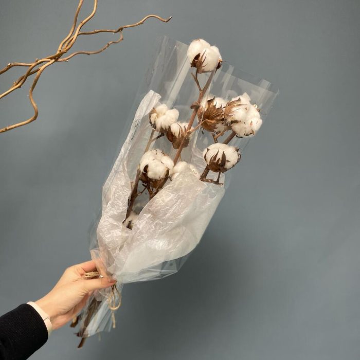 Хлопок – 3 шт.Тишью – 1 шт.Атласная лента – 1 шт.
