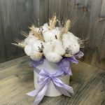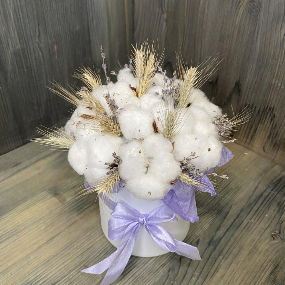«Лавандовое созвездие» Букет из розы, гвоздики, статица и хлопка