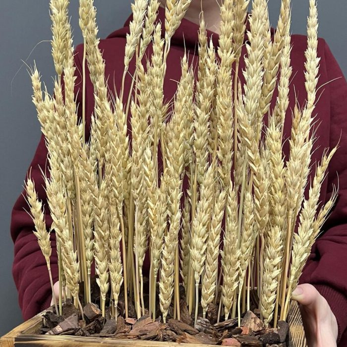 Кусочек пшеничного поля композиция в деревянном ящике