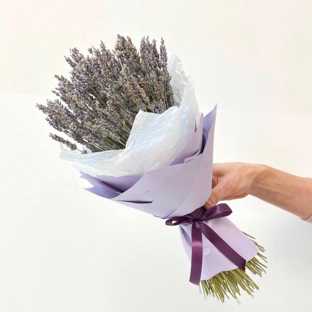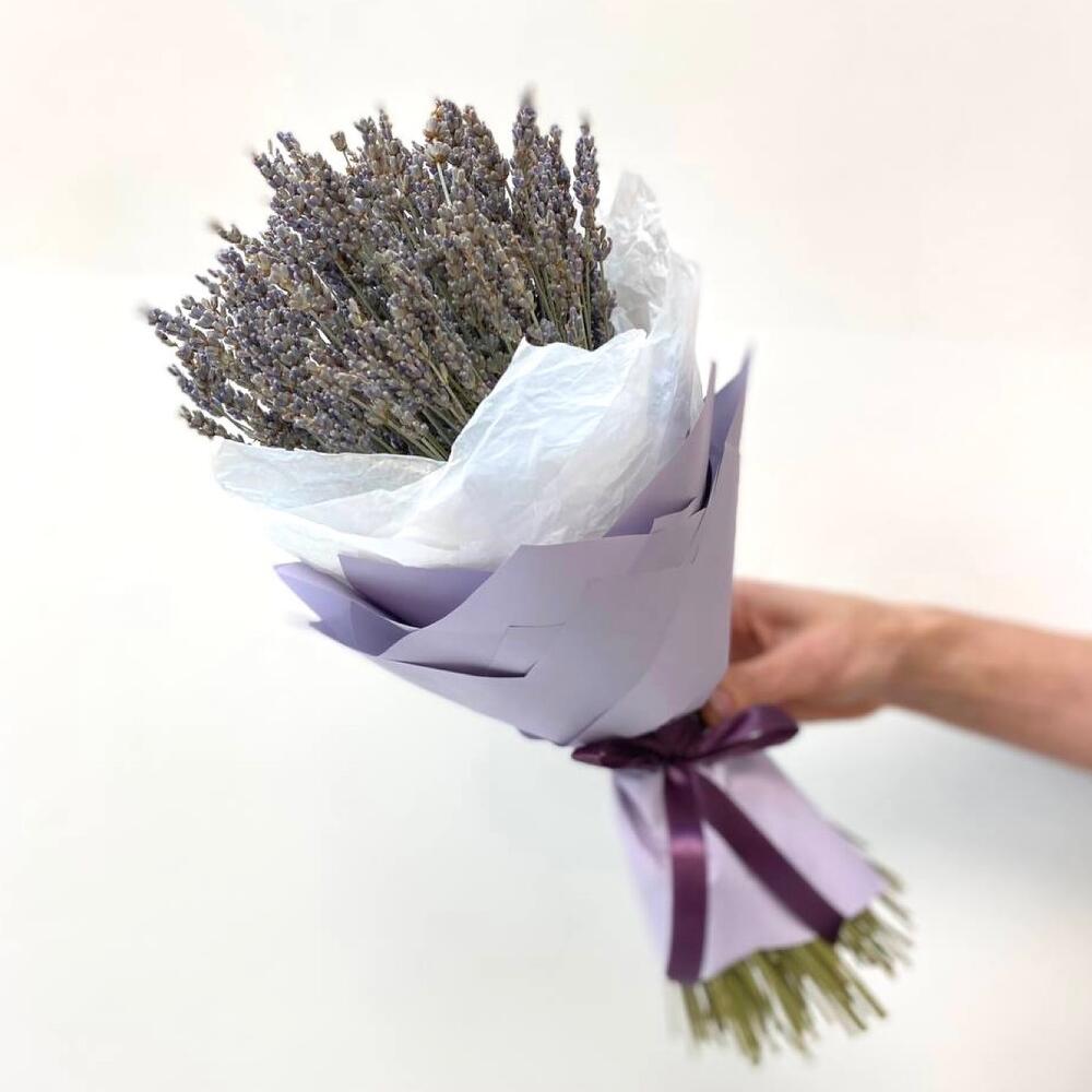 Лаванда (сухоцвет) – 100 шт.Бумага – 1 шт.Тишью белое – 1 шт.Лента атласная – 1 шт.