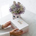 “Сиреневый туман” – композиция из гипсофилы в шляпной коробке