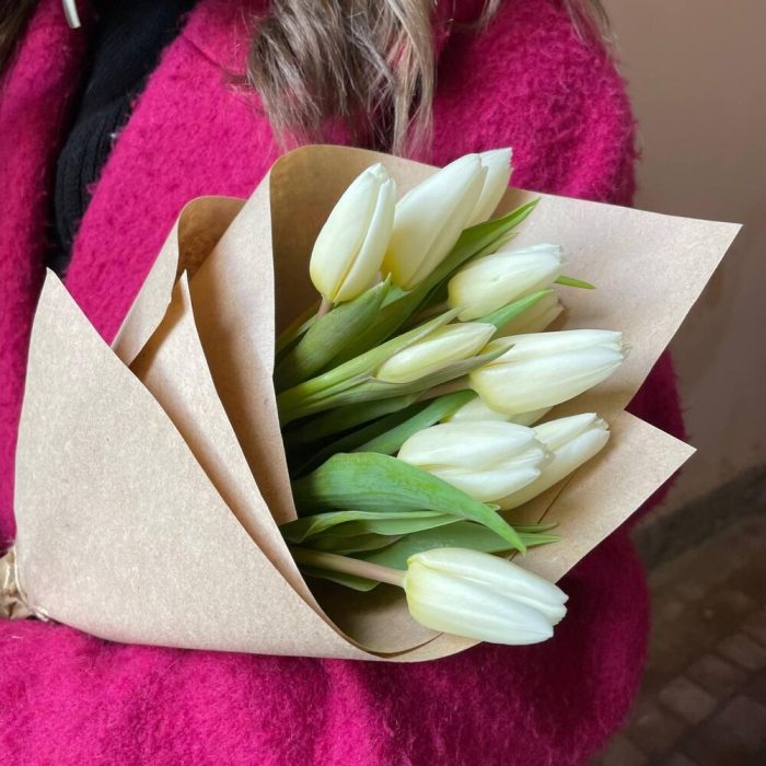 Крафтовая упаковка – 1 шт.Белый тюльпан – 11 шт.
