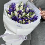 Тюльпан белый – 31 шт. ирисы – 15 шт. Писташ – 5 шт. Оформление – 1 шт.