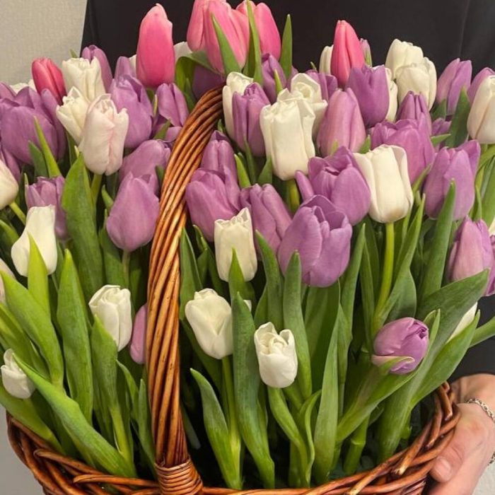 Корзина с тюльпанами