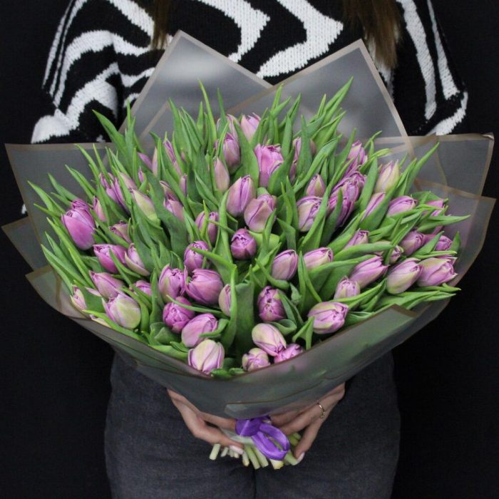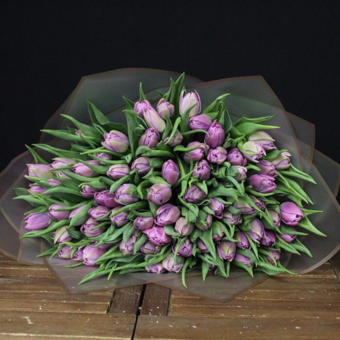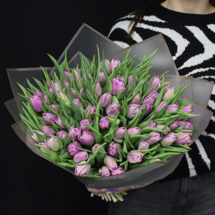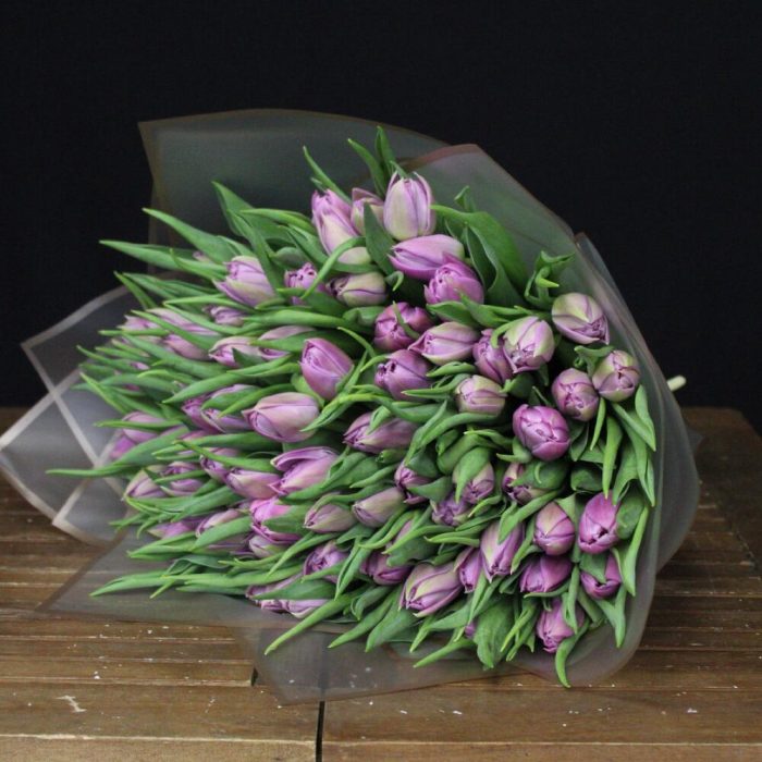 25 пионовидных сиреневых тюльпанов дабл прайс. Букет 200 Kimbirly Flowers