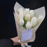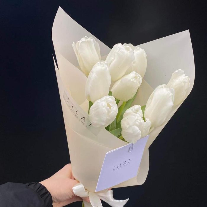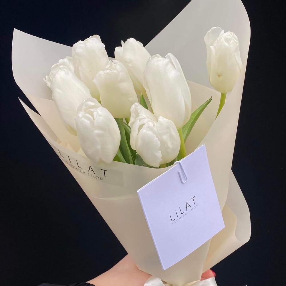Тюльпан – 9 шт. Упаковка дизайнерская – 1 шт. Открыточка с вашими пожеланиями – 1 шт. инструкция по уходу за цветами – 1 шт.