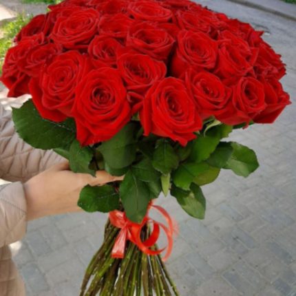 Пышный нежный и ароматный букет “Рассвет в любви” с розами, эвкалиптом, лизиантусом и генистой
